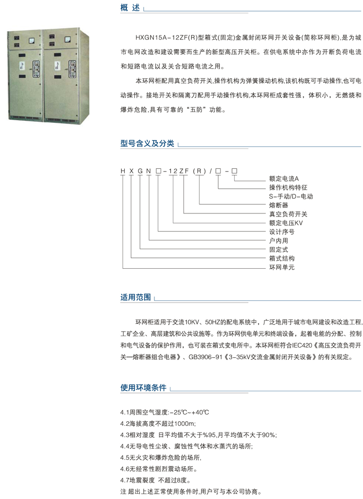 HXGN15A-12ZF(R)型箱式(固定)金属封闭环网开关设备